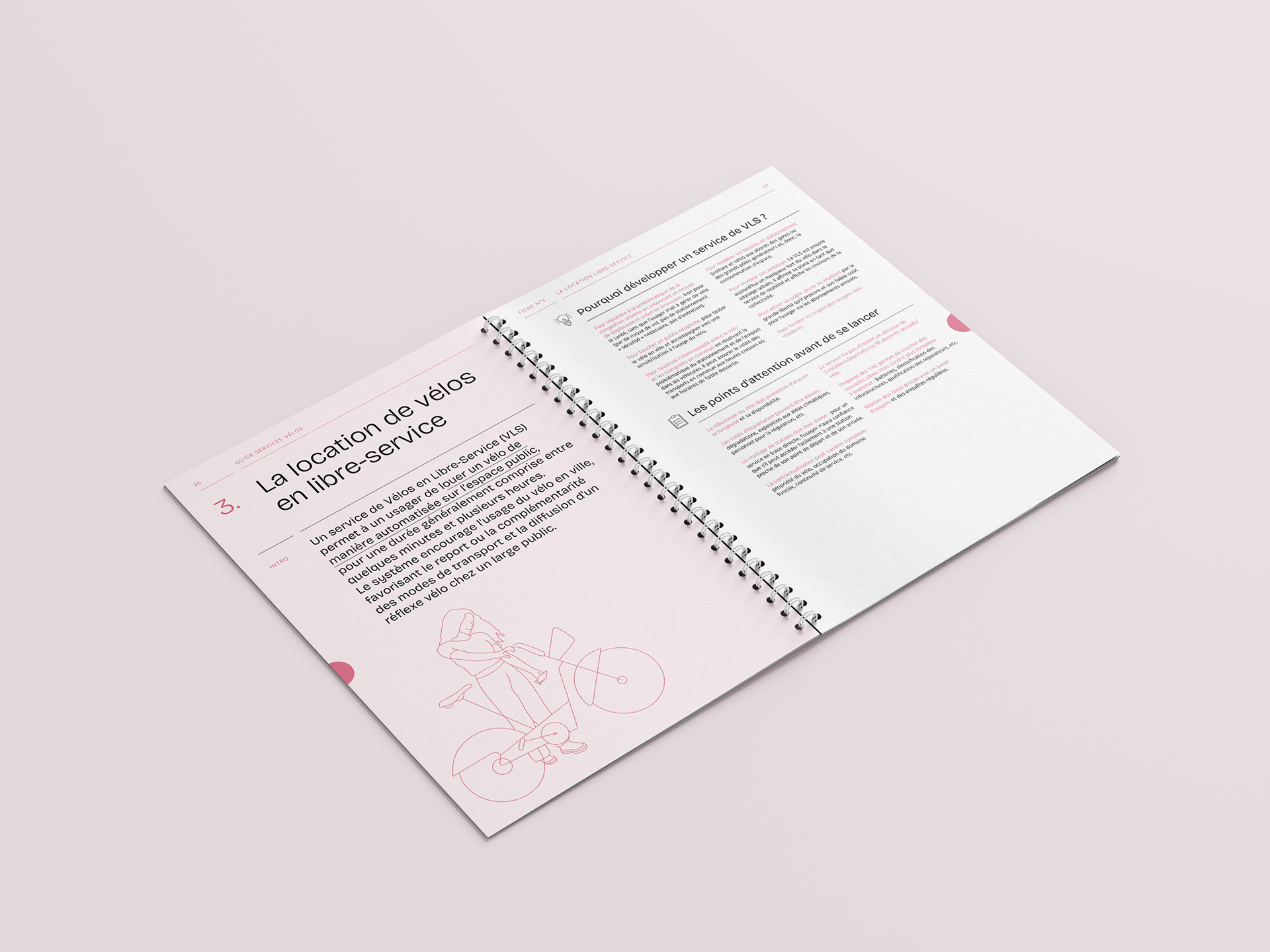 En 2024, l’agence Indiggo et le Club des villes et territoires marchables et cyclables ont travaillé à l’élaboration d’un guide pratique visant à prodiguer des conseils synthétiques aux collectivités pour créer ou adapter leurs services vélos. Le résultat : des fiches didactiques, illustrées et colorées pour encourager les bonnes pratiques.